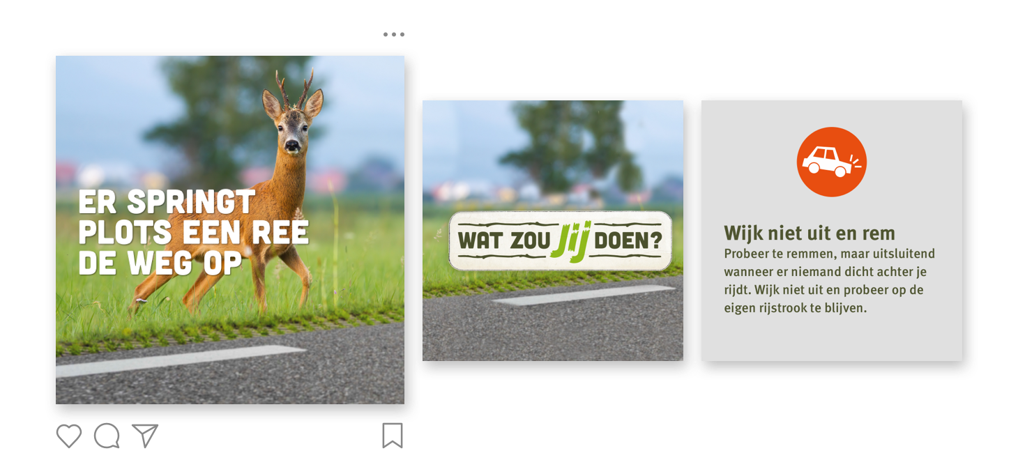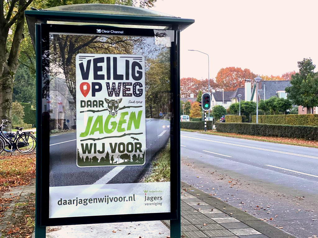 De Jagersvereniging wil dit verhaal bij het grotere publiek onder de aandacht brengen door aan te haken bij een thema dat mensen aanspreekt: verkeersveiligheid. Op verzoek van de Jagersvereniging ontwikkelden wij een creatief concept dat vertelt hoe jagers door hun werkzaamheden bijdragen aan onder andere veilig verkeer: Daar Jagen Wij Voor. Het creatief concept vertaalden wij naar een website, flyers, social media content en abri's.