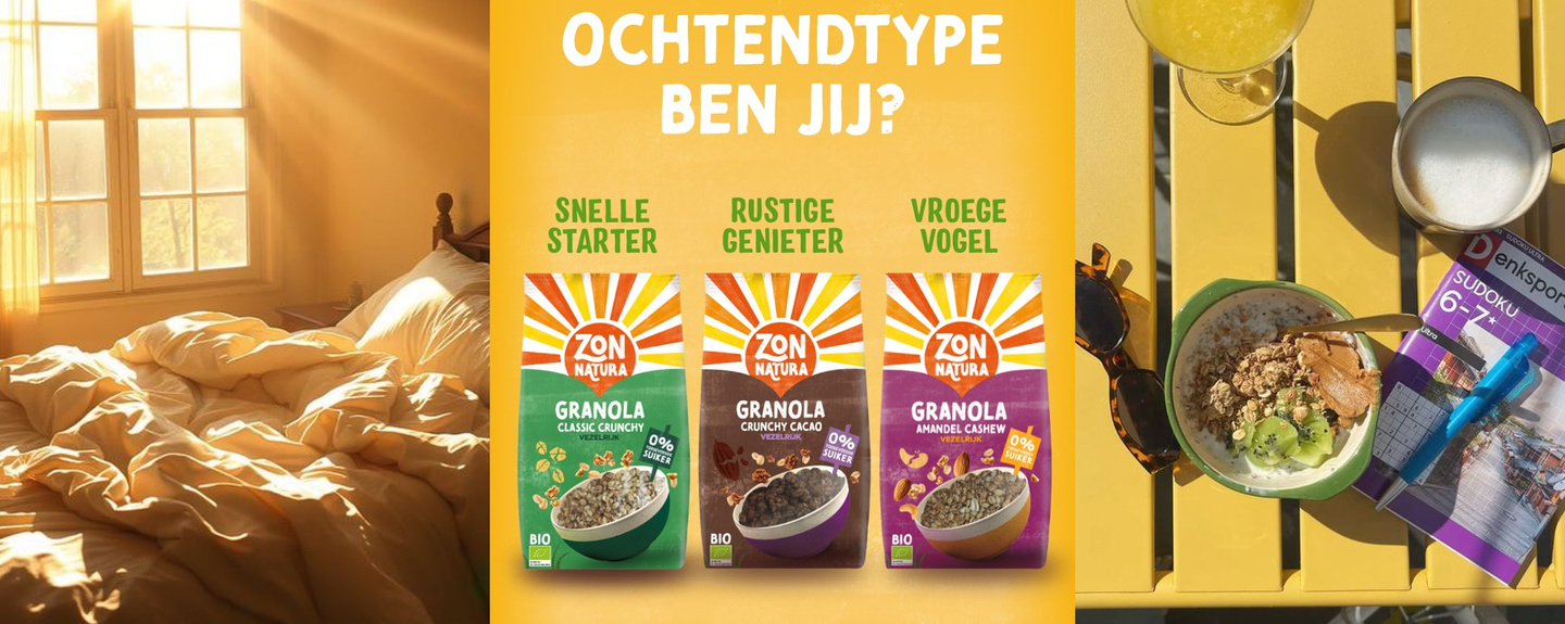 De campagne werd versterkt met gerichte social content: productposts, ontbijt recepten en een winactie die het bereik verder vergrootte. Dankzij deze geïntegreerde aanpak - van concept tot content en distributie - wist Zonnatura haar vernieuwde merkidentiteit voelbaar te maken in de belevingswereld van consumenten.