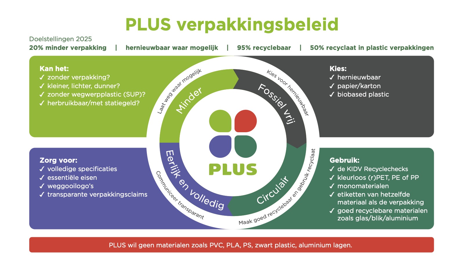 PLUS heeft in de afgelopen vijf jaar verschillende veranderingen gemaakt. Zo is PLUS als eerste supermarkt gestopt met het gebruik van zwart plastic, zijn ze gestopt met dubbele deksels, maken ze een jaarlijks overzicht van de reductie en sluiten ze aan op discussies als de Single Use Plastics (SUP) wetgeving.